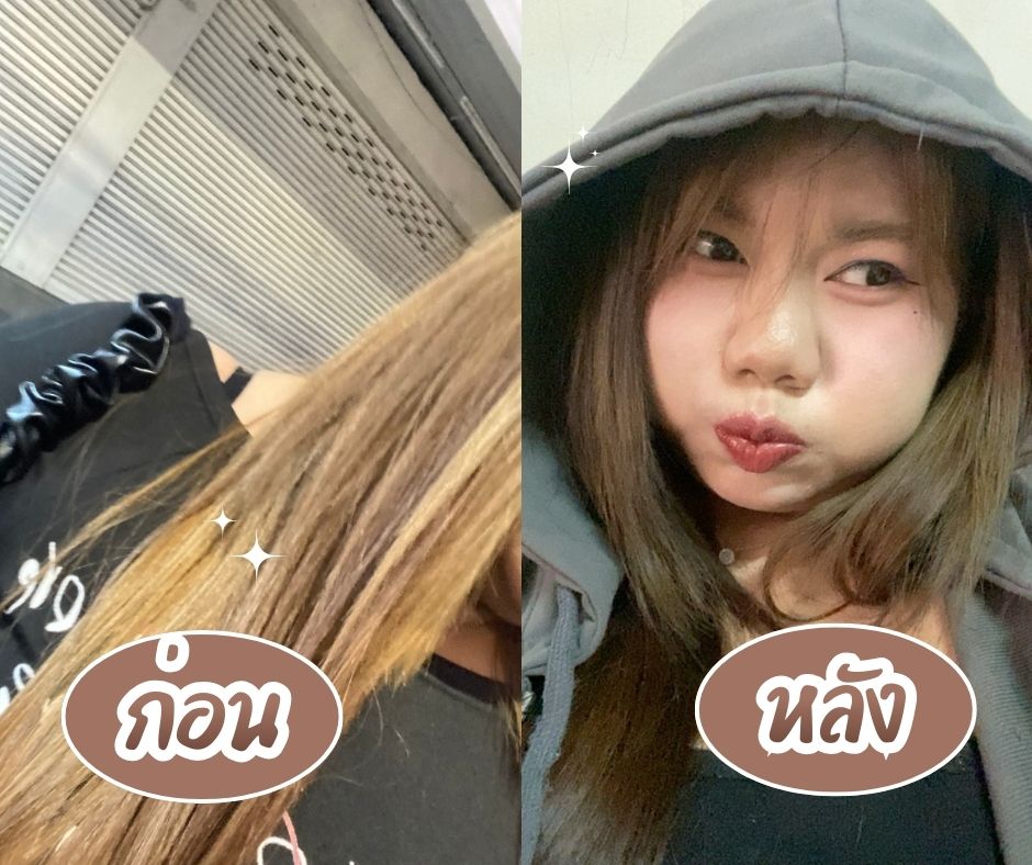 น่านย้อมแล้วหน้าเปลี่ยนเลย ล้อเล่นค่ะ สีมีความละมุมทั่วจากสีผมติดเหลืองด่างก็หายไปเลยค่ะ